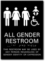 Printed Wording Reads: RESTROOM - THIS RESTROOM MAY BE USED BY ANY PERSON REGARDLESS OF GENDER IDENTITY OR EXPRESSION