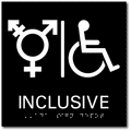 - Our high-quality yet economically priced Inclusive Gender Bathroom Signs are guaranteed to pass inspections performed by California Certified Access Specialists—or your money back.