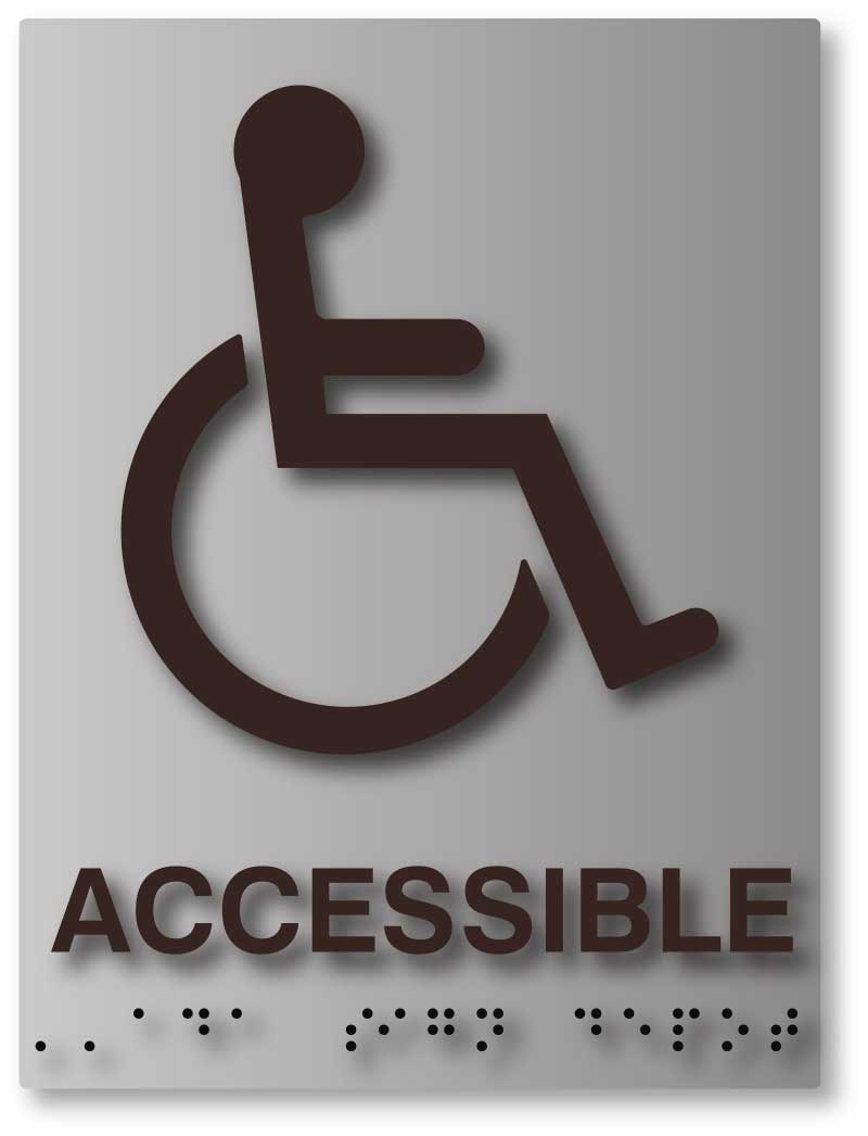 Wheelchair Accessible Symbol with Text and Braille in Brushed Aluminum